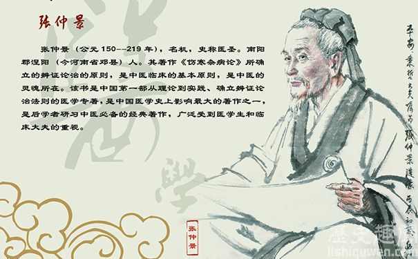 張仲景,東漢末年著名的醫(yī)學(xué)家,被稱(chēng)為“醫(yī)圣”。相傳他曾舉孝廉,做過(guò)長(zhǎng)沙太守,所以有“張長(zhǎng)沙”之稱(chēng)。張仲景廣泛收集醫(yī)方,寫(xiě)出了傳世巨著《傷寒雜病論》。