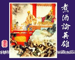 二人以青梅下酒,酒正酣時,天邊黑云壓城,忽卷忽舒,有若龍隱龍現(xiàn)。曹操說:“龍能大能小,能升能隱;大則興云吐霧,小則隱介藏形;升則飛騰于宇宙之間,隱則潛伏于波濤之內(nèi)。方今春深,龍乘時變化,猶人得志而縱橫四海。龍之為物,可比世之英雄。玄德久歷四方,必知當世英雄。”曹操實乃不世出的絕頂人物,這一番話,看似描述龍之變化,目的是說“人得志而縱橫四海”。顯然,這是他的一番自我剖白,借物詠志。當然他也下了一個套,試探在劉備眼里,什么人能縱橫四海,比得上我曹操。劉備接連指出袁術(shù)、袁紹、劉表、孫策和劉璋等地方豪強,都被曹操一一否決。劉備這個回答應該給滿分,因為當時是個人都會如此回答。這樣曹操也就認為劉備見識一般,和常人無異。接著曹操給出了當世英雄的標準,他說,“夫英雄者,胸懷大志,腹有良謀,有包藏宇宙之機,吞吐天地之志者也。”劉備繼續(xù)裝傻,問:“誰能當之”曹操指了指劉備,后指了下自己,說:“今天下英雄,惟使君與操耳!”當時天雨將至,雷聲大作。劉備裝作受了驚嚇的樣子,筷子掉到了地上:“一震之威,乃至于此。”曹操笑著說:“丈夫亦畏雷乎”劉備說:“圣人迅雷風烈必變,安得不畏”將內(nèi)心的驚惶,巧妙的掩飾過去了。